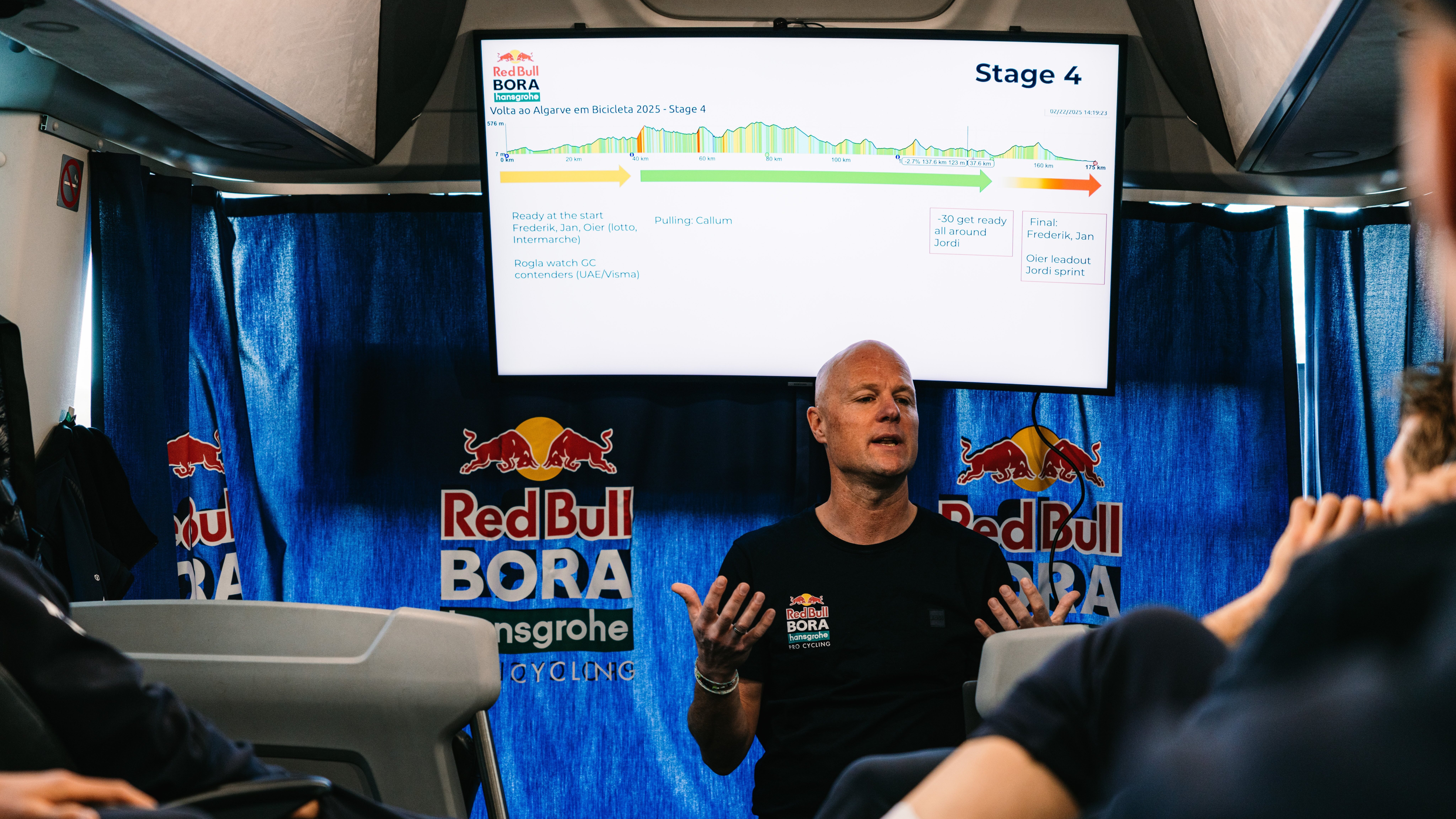 Jeder ist nervös. Mechaniker, Masseure – am wenigsten vielleicht noch die Fahrer selbst… Denn sie haben immerhin etwas Auslauf: letzte Streckenbesichtigungen, Vorbelastung, ein bisschen Bewegung. Bei vielen Teams wird die ohnehin angespannte Lage noch zusätzlich verschärft – meist aus besten Absichten: Management, Sponsoren und alle mit Social-Media-Zugang erscheinen persönlich, um nochmal alles Gute zu wünschen. Das liefert zwar reichlich Content, aber selten Konzentration.